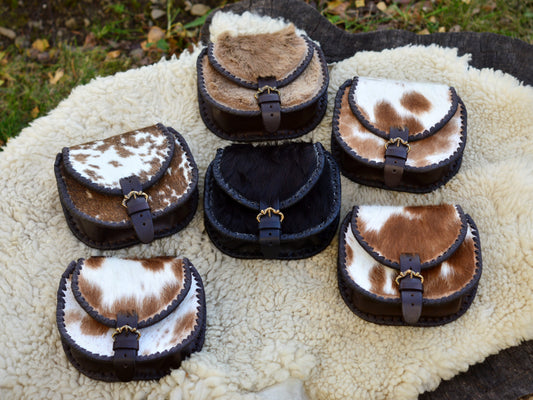 Sakiewka średniowieczna z włosiem, pleciona rzemieniem