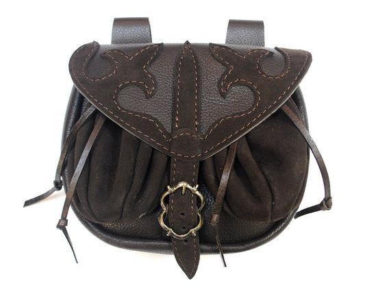 Sakiewka średniowieczna pleciona rzemieniem, fleur-de-lis