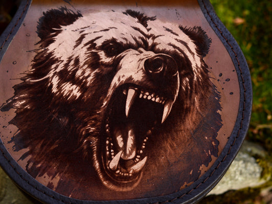 Sakiewka do pasa zdobiona laserowo - niedźwiedź
