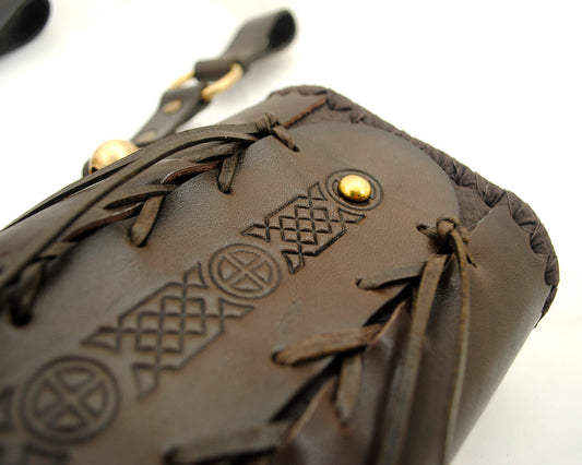 Kleine Köcher, die zur Aufnahme von Bolzen dienen. Am Gürtel befestigt.