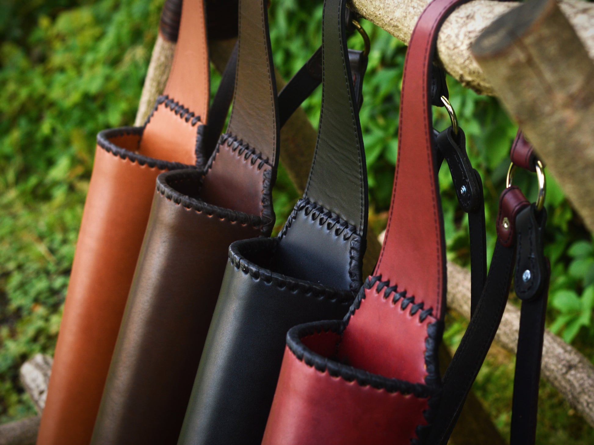 Ein halbrunder, gewebter Köcher mit geradem Riemen
