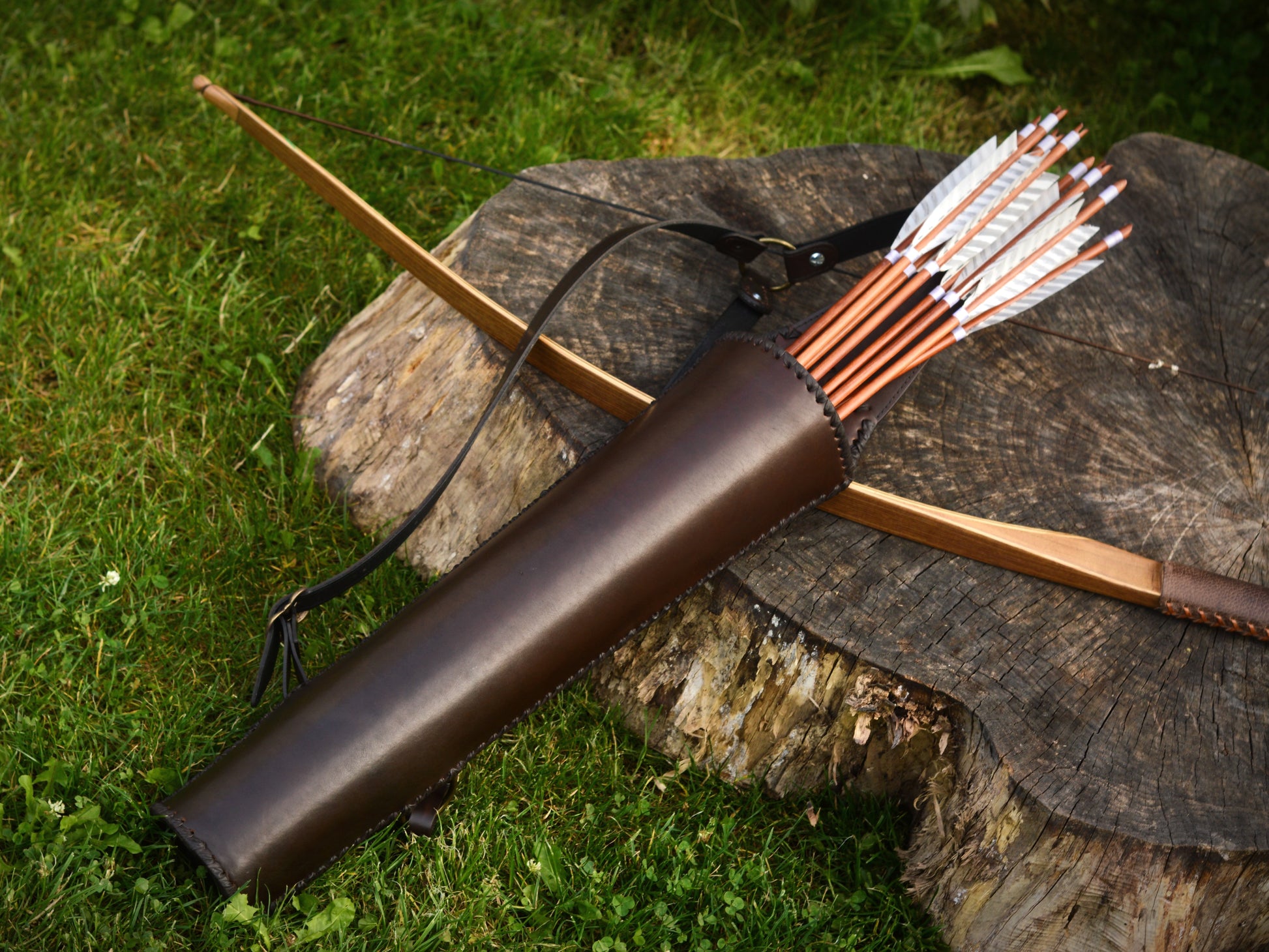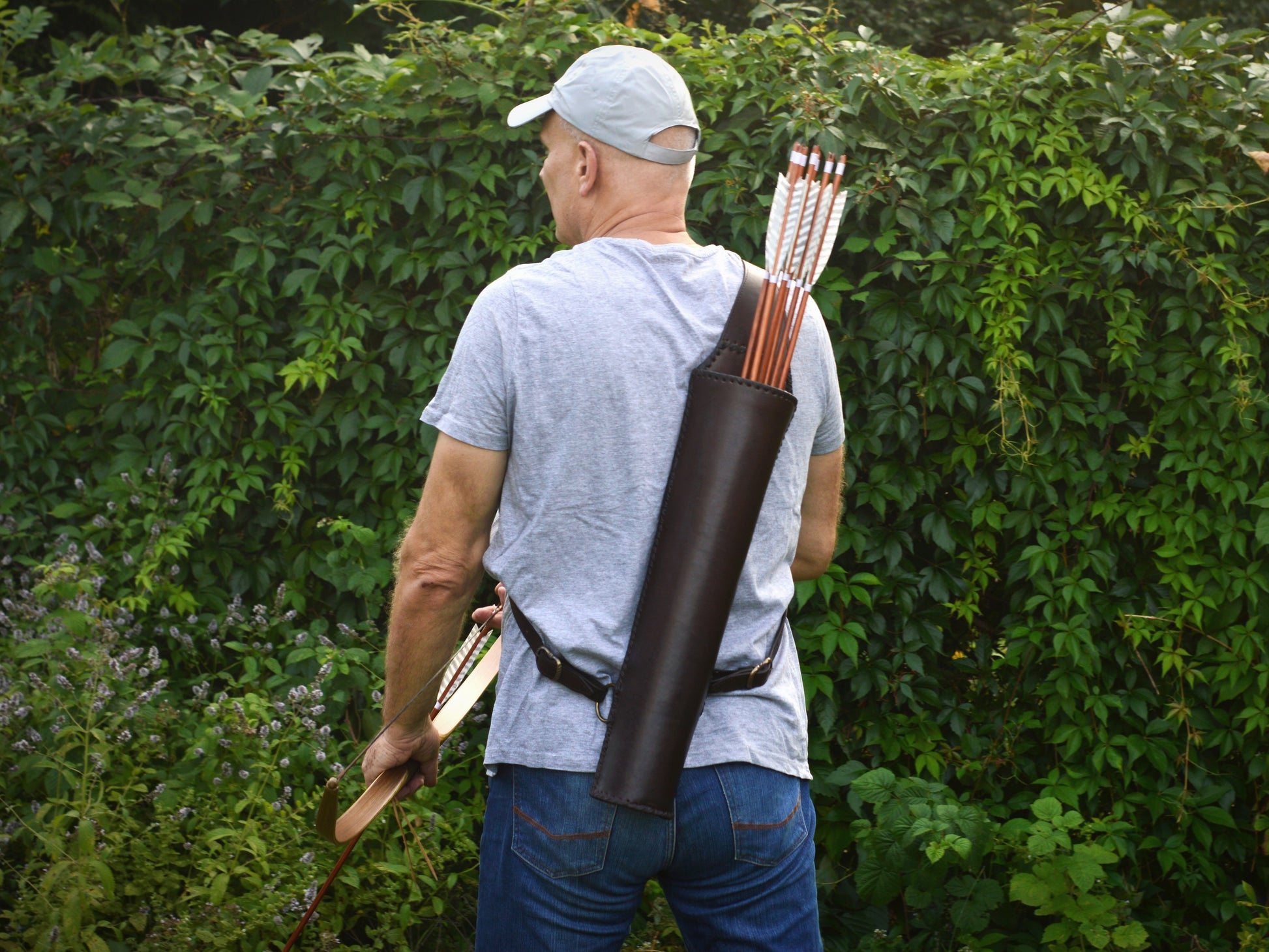 Ein Köcher mit halbkreisförmigem Querschnitt, der auf dem Rücken getragen wird.
