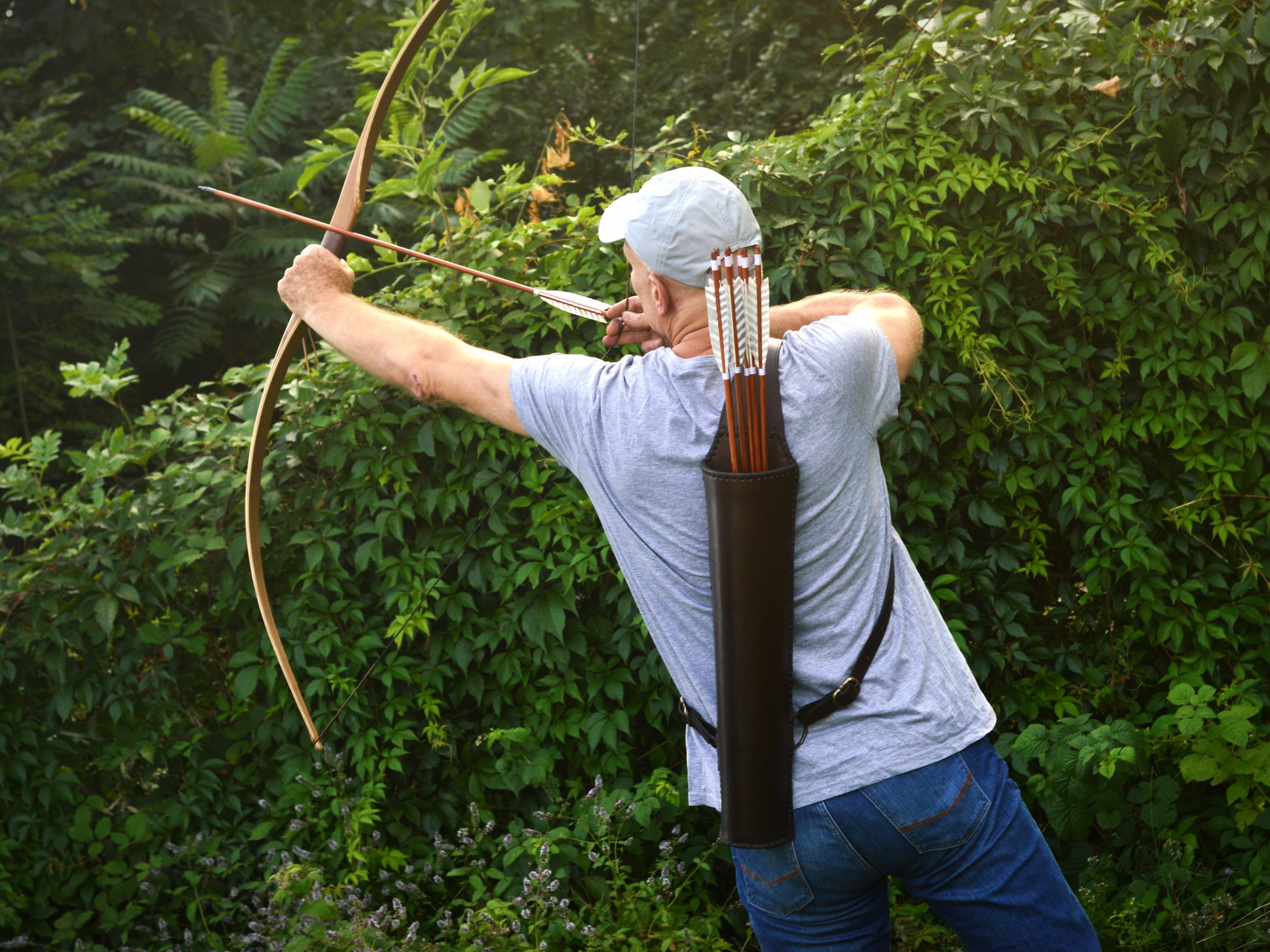 Wir bieten den Köcher auch in einer dreigurtigen Variante an. Auf der anderen Seite des Köchers ist ein zusätzlicher Gürtel angebracht, der an der Brust befestigt wird. Diese Befestigung erhöht die Stabilität des Köchers deutlich und verhindert ein Verrutschen auf dem Rücken. Besonders empfehlenswert ist die Lösung für Bogenschützen, die aus der Bewegung schießen und sich viel bewegen.